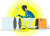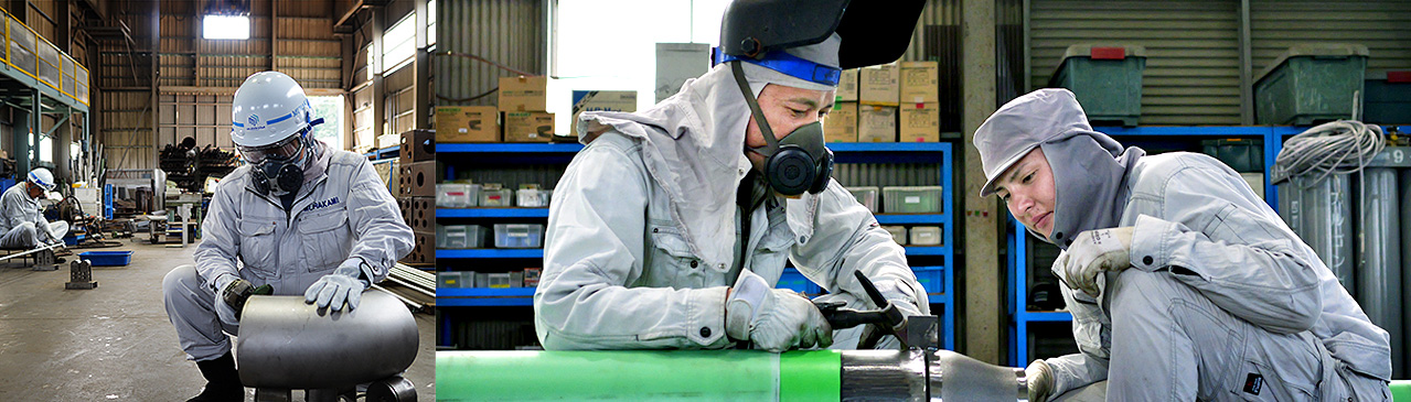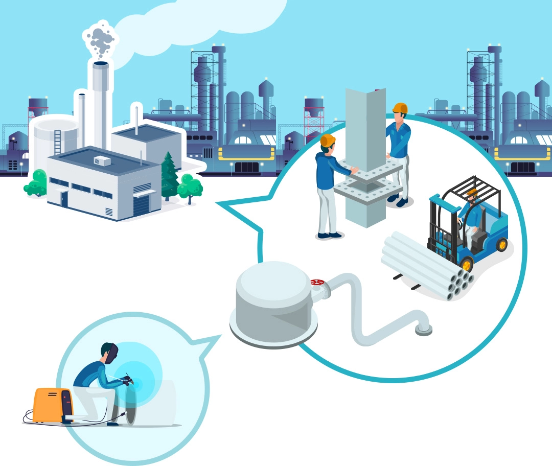 私たちは、パイプ(配管)やタンク、機械の土台などをつくって工場に取りつけ、
